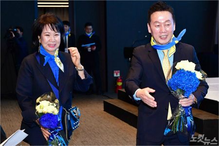 8일 오후 여의도 글래드 호텔에서 열린 열린민주당 중앙당 창당대회에서 손혜원 의원과 정봉주 전 의원이 참석하고 있다. 윤창원기자