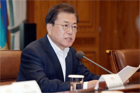 문 대통령은 "(기업구호 긴급자금 추가 투입은) 소상공인과 중소기업을 넘어서 주력 산업 기업까지 확대하고 비우량기업과 우량기업 모두를 포함해 촘촘하게 지원하는 긴급 자금"이라며 "우리 기업을 지켜내기 위한 특단의 선제 조치임과 동시에 기업을 살려 국민들의 일자리를 지키는 일이기도 하다"고 설명했다.