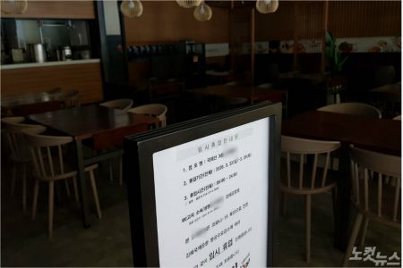 24일 개항 사상 처음으로 국제선 항공편 0편을 기록한 부산 김해국제공항 국제선청사에 입점한 한 음식점에 영업 중단을 알리는 안내판이 서 있다. (사진=박진홍 기자)