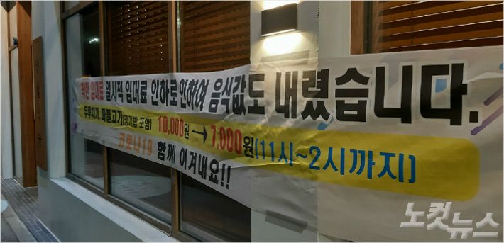 김씨는 "그나마 건물주가 임대료를 절반이나 인하해 줘 걱정을 덜게 됐다"며 "코로나19에 경기가 위축되다보니 매출도 크게 줄었지만, 월세가 내린 동안만이라도 음식 값도 할인해 장사를 하려고 한다"고 말했다.