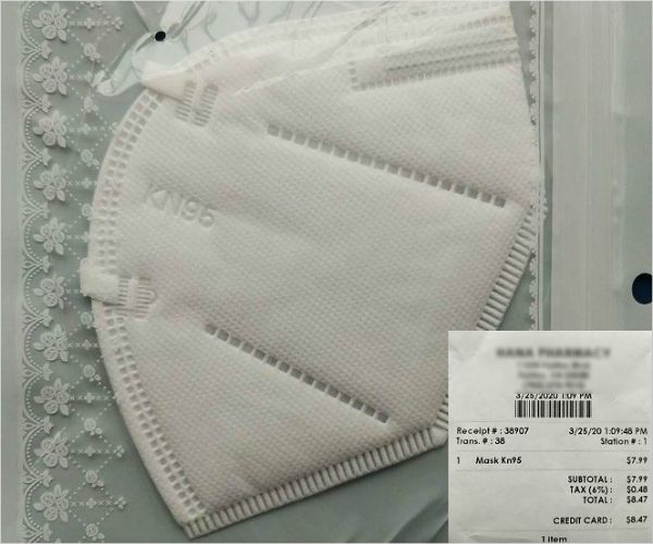 미국 버지니아주에서 판매중인 N95마스크. 영수증에 8.47달러가 찍혀있다.(사진=권민철 특파원)