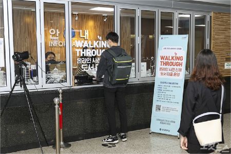 워킹 스루 도서 대출은 학생들이 도서관 자료실에 직접 가지 않고 도서관 로비에서 책을 빌릴 수 있는 서비스로 지난달 23일부터 실시했다.