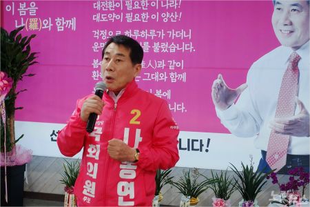 나 후보는 이어 양산에 있는 자신의 선거사무소에서 출정식을 열어 '정권심판론'과 '양산시장 경력'으로 지지세를 과시했다.