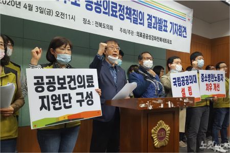 3일 의료공공성강화 전북네크워크가 기자회견을 갖고 있다.(사진=김용완 기자)