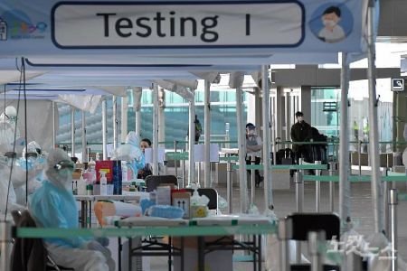 모든 해외 입국자에 대한 2주간 자가격리 의무화 시행 첫 날인 지난 1일 인천국제공항 제2터미널에 개방형 선별진료소가 마련돼 있다.(사진=박종민 기자/자료사진)