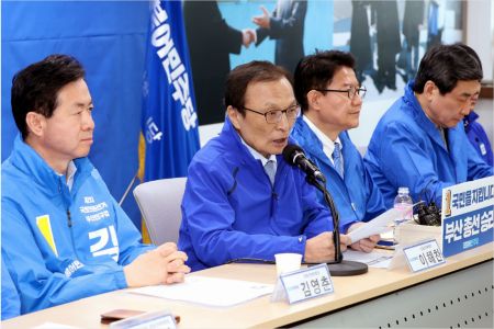 6일 오전 더불어민주당 부산시당에서 열린 더불어민주당 중앙당 선거대책위원회 전체 회의에서 중앙당 상임선대위원장인 이해찬 당 대표가 인사말을 하고 있다.(사진=연합뉴스)