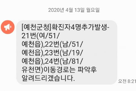 코로나19 안전안내문자. 사진=휴대폰 안내문자 캡처