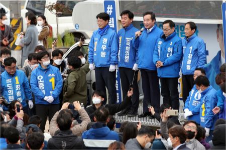 한편, 다선의 불출마 의원들을 중심으로 꾸린 '라떼는!유세단'은 이날 경기 성남, 용인, 평택을 돌아다니며 수도권 유세에 집중했다. 6선의 이석현 의원 등을 주축으로 한 '들러리 유세단'은 부산에서 영남권 표심 몰이에 나섰다.