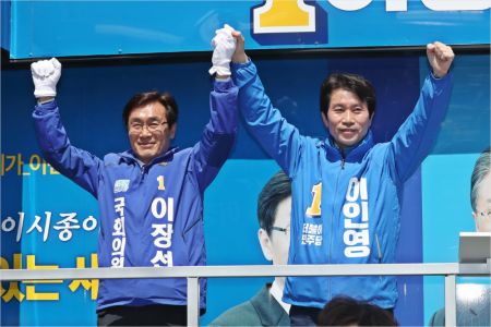 지역 유세를 마친 이낙연·이인영 위원장은 이후 수도권 최대 격전지들 중 하나인 서울 광진구로 이동해 유세 지원을 이어갔다.