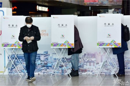 지난 10일 사전투표소에서 시민들이 투표를 하는 모습.(사진=윤창원 기자)