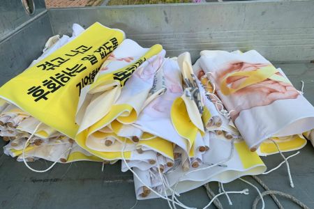 지난 16일 강릉시에 의해 철거된 세월호 추모 현수막. (사진=강릉시민추모위원회 제공)