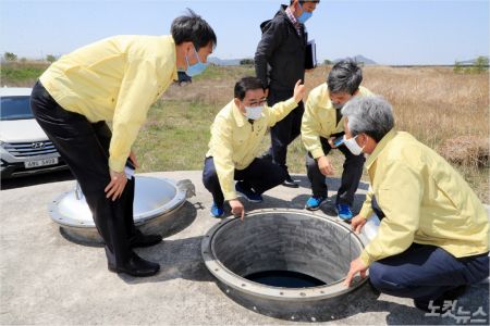 취수정 유지관리 보수공사는 시간이 경과함에 따른 대수층의 지형 변화와 취수관, 여과기 등에 이물질이나 흙 입자가 유입돼 원수의 취수량 감소에 대비하기 위해 '고압가스를 이용 순간 분사되는 압력에 의해 관정을 세척'하는 고압펄스 방식으로 취수정 50곳을 대상으로 매년 주기적으로 시행되는 공사다.