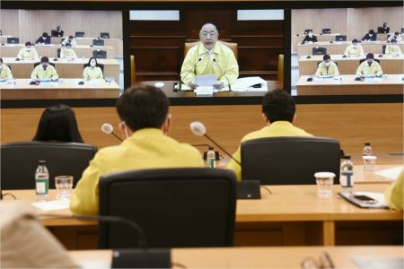 27일 홍남기 부총리는 '제213차 대외경제장관회의'에서 "코로나19로 인한 세계교역 급감은 수출 중심의 우리 경제에 엄청난 충격"이라고 말했다.