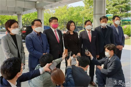 이번 4.15 총선에서 뽑힌 미래통합당 당선인들이 29일 부산경찰청을 직접 찾아 엄정한 수사를 할 것을 촉구했다.(사진=강민정 기자)