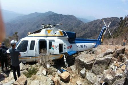헬기는 천왕봉 인근 바위에 불시착해 동체 일부가 파손됐다. 사고 원인은 아직 확인되지 않고 있다.