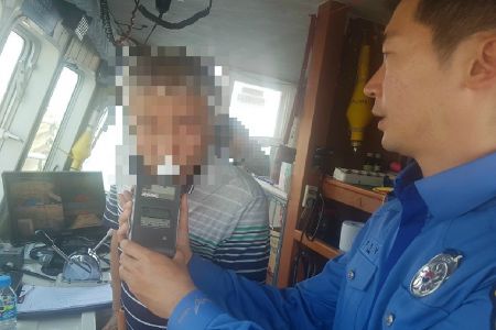주말 낚시어선에 대한 불시 음주측정을 실시하고 있는 해양경찰. (사진=태안해양경찰서 제공)