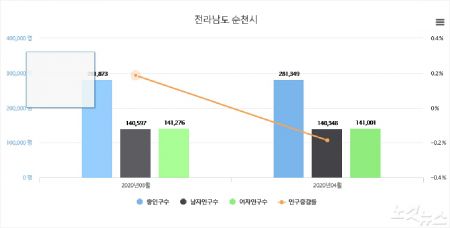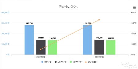 이처럼 순천시와 여수시가 인구수 순위가 엎치락뒤치락 변동될 때마다 성과를 홍보하고 있지만 정작 전체 인구 추세는 감소세를 면치 못하고 있는 실정이다.