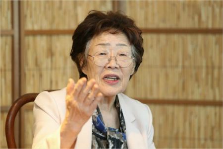 일본군 '위안부' 피해 생존자인 이용수 할머니가 7일 오후 대구시 남구 한 찻집에서 열린 기자회견에서 수요집회를 없애야 한다고 주장하며 관련 단체를 비판하고 있다. (사진=연합뉴스)
