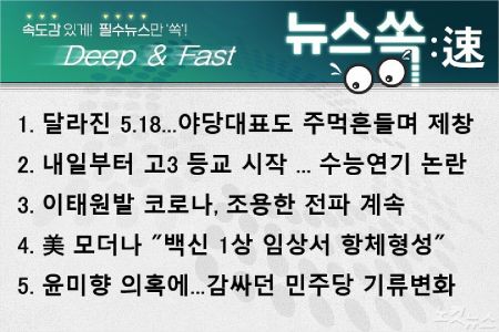 2. 내일(20일)부터 고3 등교수업 시작더 미뤘다가는 대입 수험생들 학력격차 심화될 수 있다는 지적에 코로나 우려 불구 등교수업 강행. 이 와중에 조희연 서울시교육감 “수능 한달 연기 가능하다” 발언. 대입일정 변함없다는 교육부와 충돌했는데 혼란 가중되는 모습.