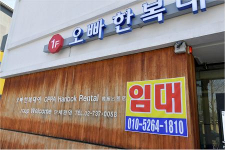 코로나19 사태 장기화로 외국인 관광객수가 감소하고 있는 가운데 24일 서울 종로구 한복대여점에 임대 현수막이 걸려 있다. 자료사진=박종민 기자