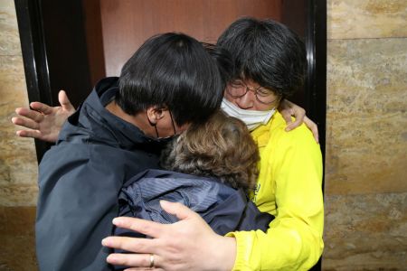 한종선 형제복지원 피해 생존자 대표(오른쪽 노란색 상의)와 곽정례 한국전쟁유족회 여성위원회 부위원장(가운데) 등이 지난 20일 오후 국회 본회의에서 진실·화해를 위한 과거사정리 기본법 일부개정법률안(대안)이 통과되자 기뻐하고 있다. (사진=연합뉴스)