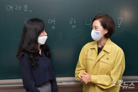 용산중 등교 수업 준비상황 점검 나선 유은혜 사회부총리