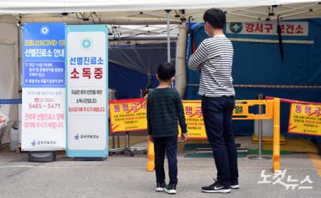 강서보건소 선별진료소 찾은 아빠와 아들