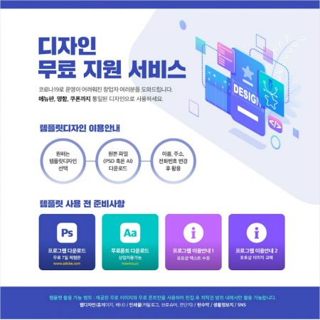 필요한 시민은 언제든지 PC를 이용해 어도비(Adobe) 홈페이지에 접속해 무료 포토샵과 일러스트 파일을 받은 후, 시가 제작한 디자인 템플릿 파일을 창업 업종에 맞게끔 수정해 출력하면 된다.