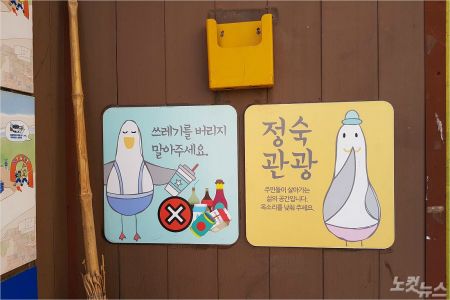 부산 흰여울문화마을에 쓰레기 투기 금지 안내문이 붙어 있다. (사진=박진홍 기자)