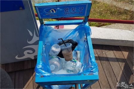영도구청 "수거함 추가 설치하면 불법투기 늘어…관광객이 가져가야"