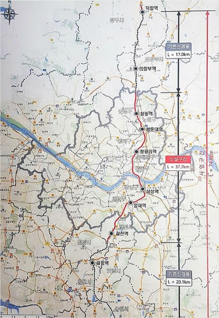 현재 이 노선은 양주 덕정-의정부-창동-광운대-청량리-삼성-양재-과천-금정-수원 등 10곳에 정차하는 것으로 설계돼 있다.
