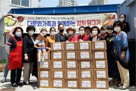 청주시여성단체협의회가 16일 모충동 행정복지센터에서 '다문화가족과 함께 김치 담그기' 행사를 열었다.