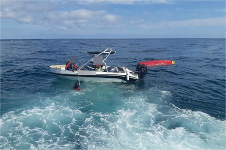 해경 구조대가 전복된 레저보트 구조를 위해 접근하고 있다(사진=포항해경 제공)