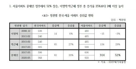 이에 따라 서울 아파트값 변동에 따른 불로소득도 문재인 정부에서 493조원으로 늘어났다. 박근혜 정부 때는 약 155조원이 늘었고, 이명박 정부 때에는 약 35조원이 감소했다.