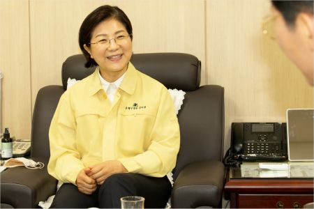 김미경 은평구청장이 CBS노컷뉴스 인터뷰를 갖고 있다 (사진=은평구 제공)