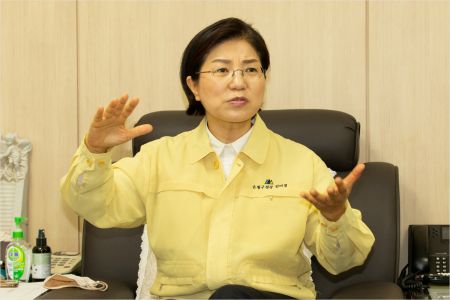 김미경 은평구청장이 CBS노컷뉴스와 인터뷰를 갖고 있다. (사진=은평구 제공)