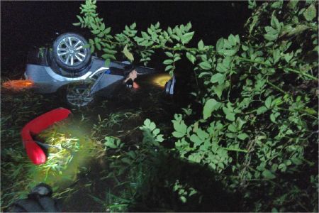 26일 오전 1시 20분쯤 음파유원지 내 호수에 SUV차량이 빠진 채 발견됐다. (사진 = 전북소방본부 제공)