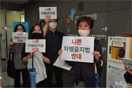 차별금지법이 발의를 넘어 입법으로 나아가지 못한 데에는 여러 이유가 있지만, 보수 개신교 등의 반대 움직임이 컸다. 이날 인권위 기자회견장 앞에서도 '나쁜 차별금지법 반대'라는 손 팻말을 든 시민들이 차별금지법에 반대하는 목소리를 냈다.