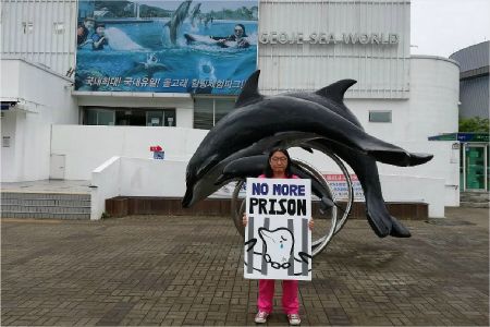 전국 동물애호단체는 3일 거제씨월드 앞에서 1인 시위를 벌였다.
