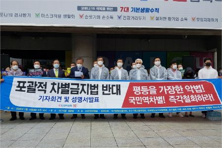 지역 기독교 단체 등 시민단체들의 '포괄적 차별금지법안 반대' 기자회견.