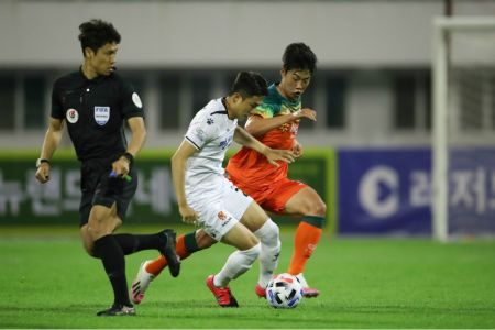 광주FC의 김주공이 지난 12일 k리그 11라운드 강원과의 경기에서 멋진 드리블을 선보이고 있다.(사진=한국프로축구연맹 제공)
