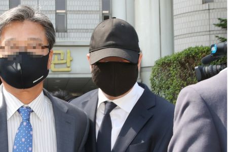 주운전 혐의로 기소된 종근당 이장한 회장의 아들 이모 씨(검은색 모자 쓴 이)가 16일 오전 서울 서초구 서울중앙지법에서 열린 1심 선고공판에 출석한 뒤 법정을 나서고 있다.(사진=연합뉴스)