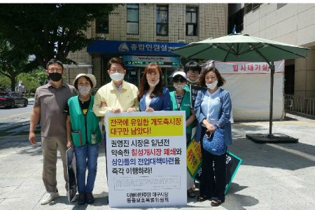 더불어민주당 대구시당 동물보호특별위원회(위원장 임미연)는 16일 초복을 맞아 대구시청 앞에서 칠성개시장 폐쇄를 요구했다.