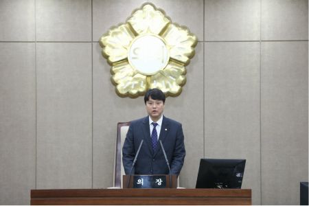 지난 1일 제353회 임시회 제1차 본회의에서 조 의장이 의장석에 오른 모습이다.(사진=수원시의회 제공)