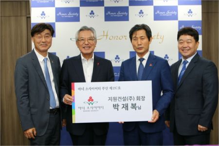 사랑의열매를 상징으로 하는 부산사회복지공동모금회는 고액 기부자 모임 '부산 아너 소사이어티' 멤버로 (주)지원건설 박재복 회장이 가입했다.