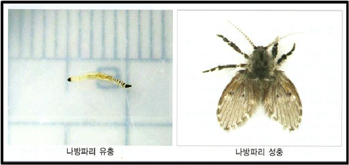 나방파리 유충과 성충. (사진=대전시 상수도사업본부 제공)