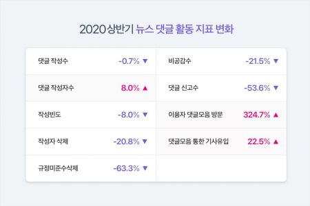 이런 조치들이 이뤄진 결과 지난 1월 대비 6월 댓글 수는 소폭(0.7%) 줄었지만 작성자 수는 8% 증가한 것으로 나타났다. 작성자가 직접 삭제한 댓글 수는 20.8% 감소하고, 인 당 댓글 작성 빈도는 8% 줄었다.