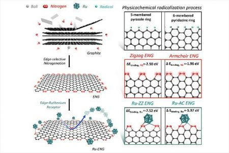 루테늄 금속을 지지해 주는 역할을 하는 그래핀의 가장자리에만 질소를 첨가했다.