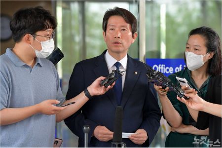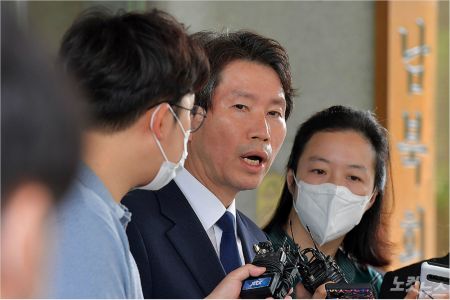 이인영 통일부 장관 후보자가 지난 21일 서울 종로구 남북회담본부에서 국회로 출발하기 전 인터뷰를 하고 있다. (사진=박종민 기자)