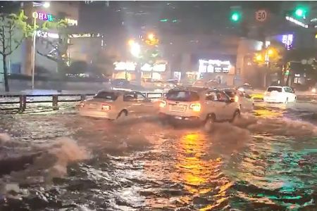 시간당 80mm 넘는 폭우로 부산 지역 곳곳에서 차량이 침수되고 토사가 흘러나와 도로를 덮치면서 통행이 제한되기도 했다.